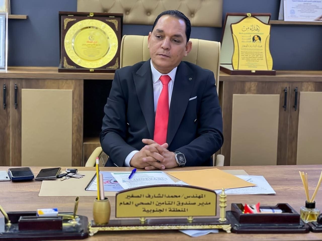 السلام غربال الشاوش عن مركز سحاب فزان للتدريب والتطوير اجتماعًا مع السيد مدير صندوق التأمين الصحي العام بالمنطقة الجنوبية المهندس محمد الشارف ارحومة والسادة المحترمون مدراء المكاتب والاقسام بالصندوق، لبحث آليات التعاون المشترك وتنفيذ خطة تدريبية متكاملة تستهدف رفع كفاءة موظفي الصندوق في مختلف المجالات الإدارية والفنية.